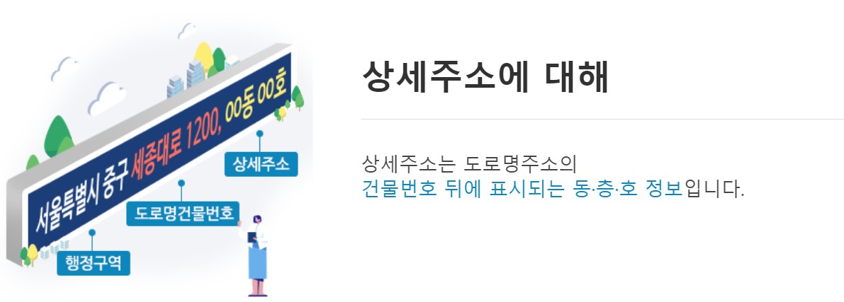 건물번호를 포함한 도로명 주소는 2014년부터 전국적으로 시행되기 시작한 새로운 주소 체계로, 도로에는 이름을 붙이고 주택·건물에는 도로를 따라 순차적으로 번호를 부여해 표기되게 됩니다. 이전의 지번 주소와 시·군·구 및 읍·면까지는 동일하지만 리·지번·아파트 이름은 도로명과 건물번호를 사용하게 됩니다.