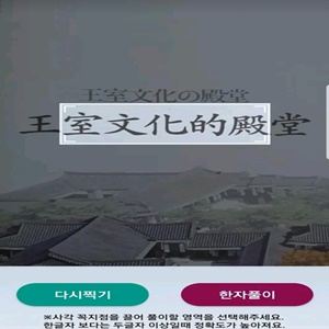 이름대로 사진을 찍어 한자를 번역할 수 있는 어플로, 스캔한 글자를 풀이하여 사전에 음과 뜻을 공부할 수 있는 서비스를 지원합니다. 먼저 이미지를 찍어 글자가 표기되면 화면 하단의 ^한자풀이^ 버튼을 눌러 각 글자를 자세하게 살펴볼 수 있습니다.